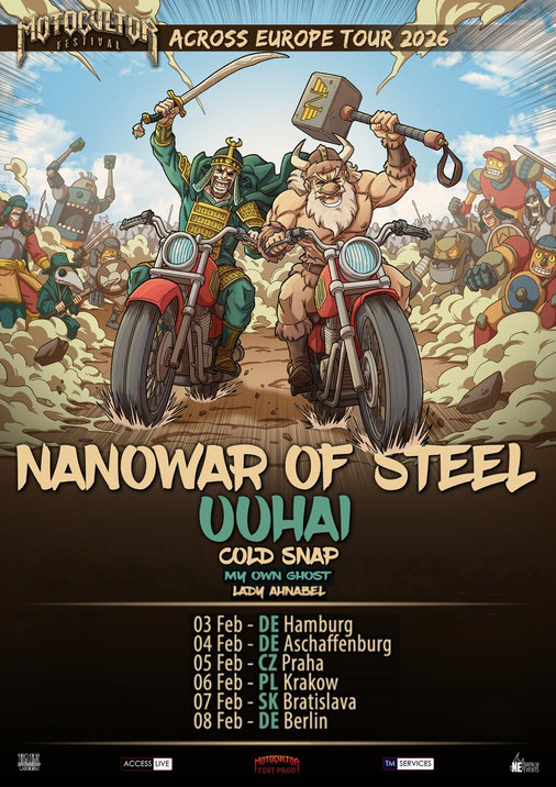 We will be joining Nanowar Of Steel, Uuhai, Cold Snap and Lady Ahnabel on the Motocultor Across Europe Tour 2026 on the following 6 dates in February: