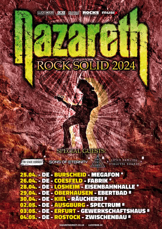 We are excited to announce that we will join legendary Scottish rockers Nazareth on their Rock Solid Tour for 5 dates in Germany: